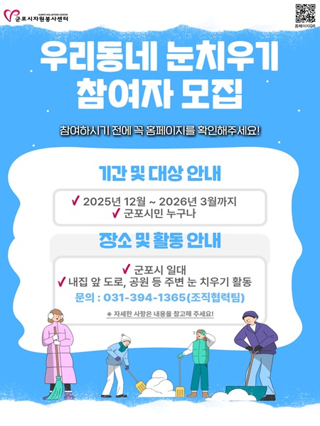 - 내용 : 내 집 앞 도로, 공원 등 주변 눈 치우기 활동